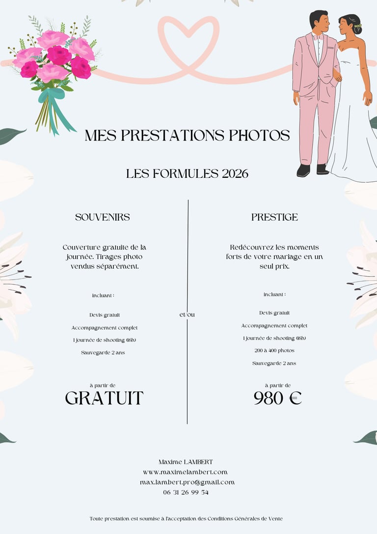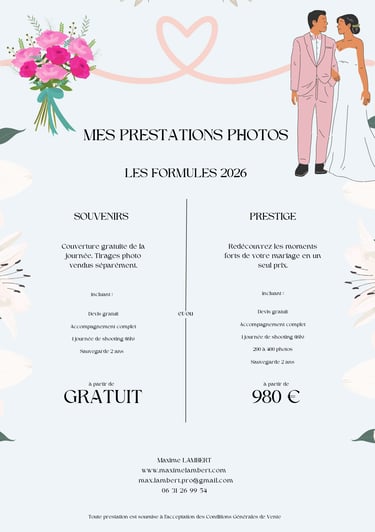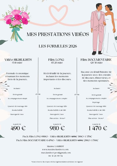 TARIFS MARIAGES 2026