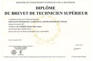 Obtenu en 2023, ce diplôme certifie d'un savoir-faire et de compétences techniques professionnelles.